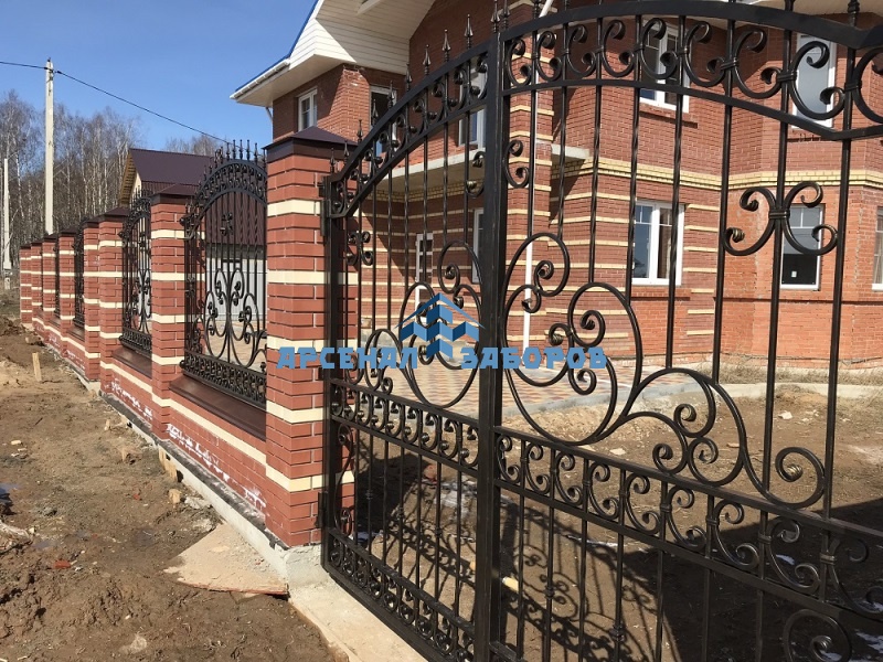Кирпичный забор с ковкой