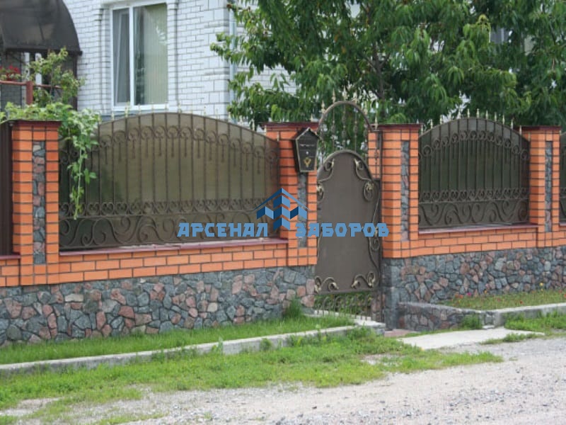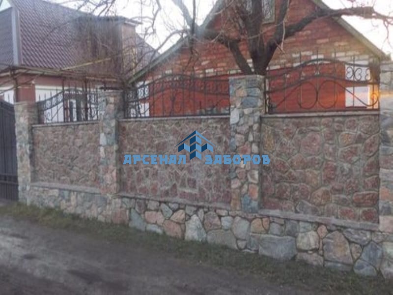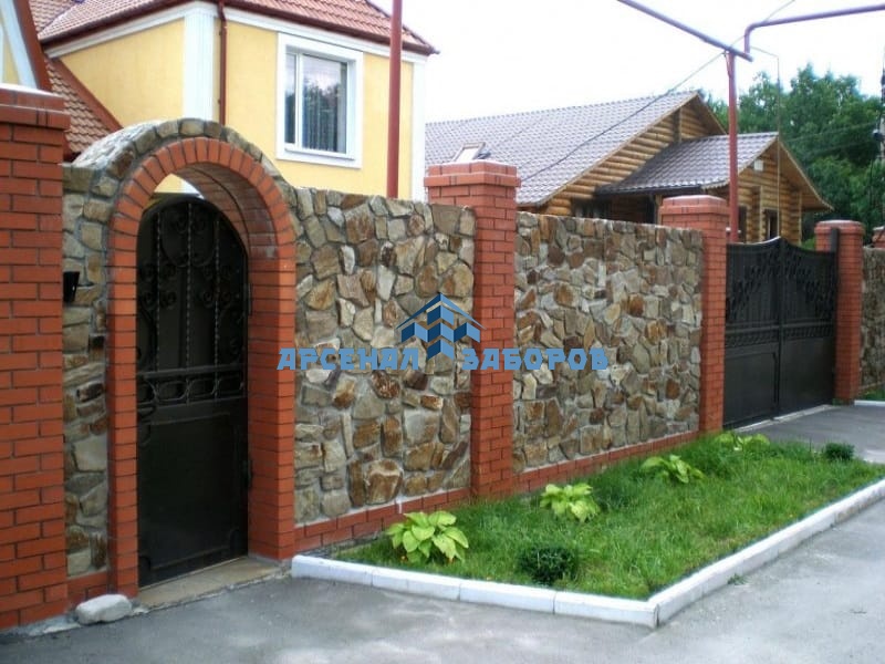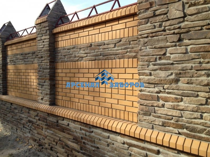 Фото работ - кирпичный забор с камнем